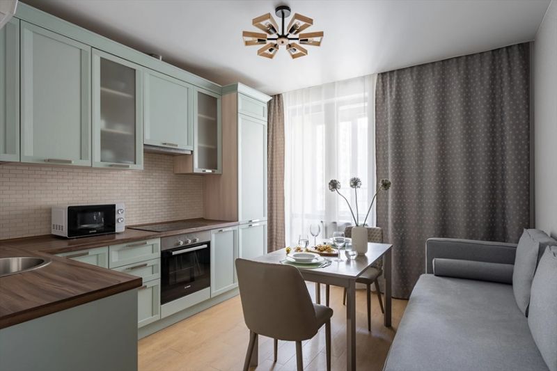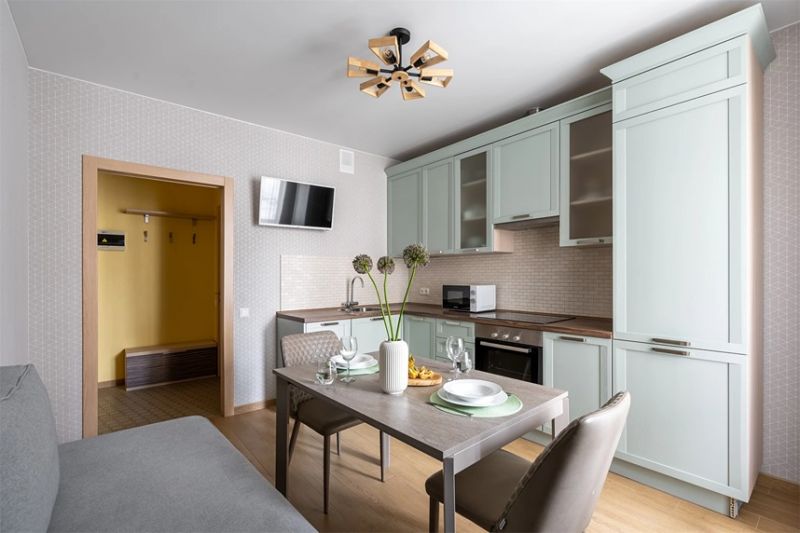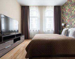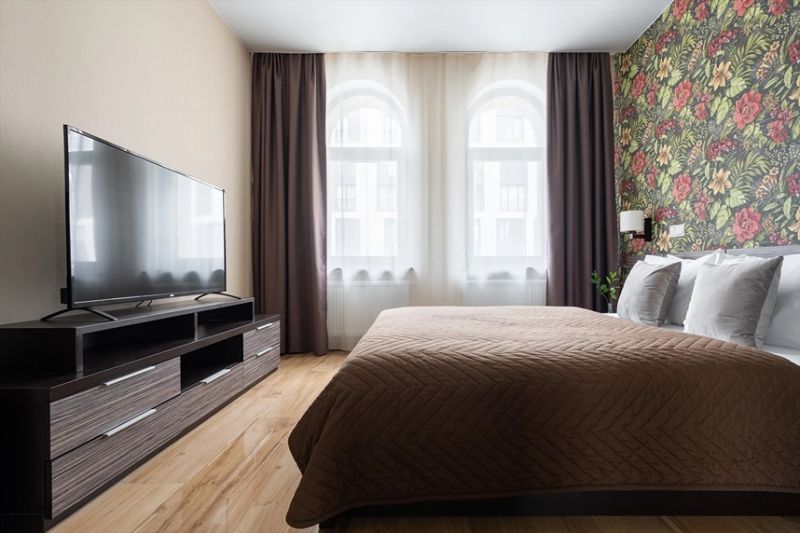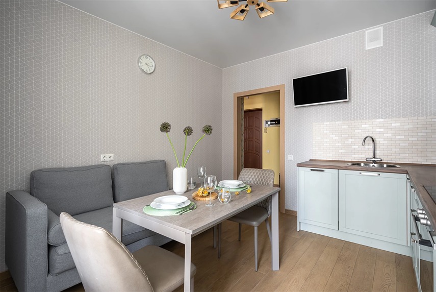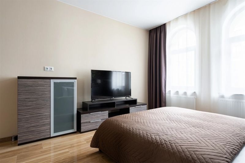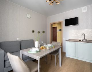 Яркие апартаменты площадью 45 квадратных метров с отдельной спальней и кухней-гостиной оснащены современной техникой и идеально подходит для длительного проживания. В них могут комфортно разместиться 2–3 человека. Уютная спальня с арочными окнами, плотными шторами и большой кроватью ждет гостей. В числе приятных деталей — идеальная чистота и порядок после уборки клининговой службы, продуманное пространство, свежее белье, полотенца, тапочки и базовая банная косметика, телевизор Smart TV и Wi-Fi, вся необходимая техника для комфортной жизни, теплый пол в ванной. Ванная комната оборудована бойлером, поэтому горячая вода есть всегда. Кухня-гостиная просторная и выходит на балкон-лоджию, где приятно пить кофе по утрам. Предусмотрен полный набор кухонной утвари и посуды, а также посудомоечная машина. На территории жилого комплекса есть парковка.