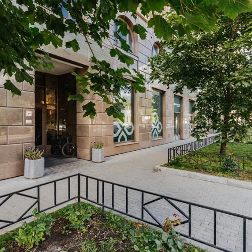Самолетом до аэропорта Пулково (г. Санкт-Петербург), далее на рейсовом автобусе №39 до остановки «ст. м. Московская», далее на метро до станции «Площадь Восстания», далее пройти 1,5 км до отеля.